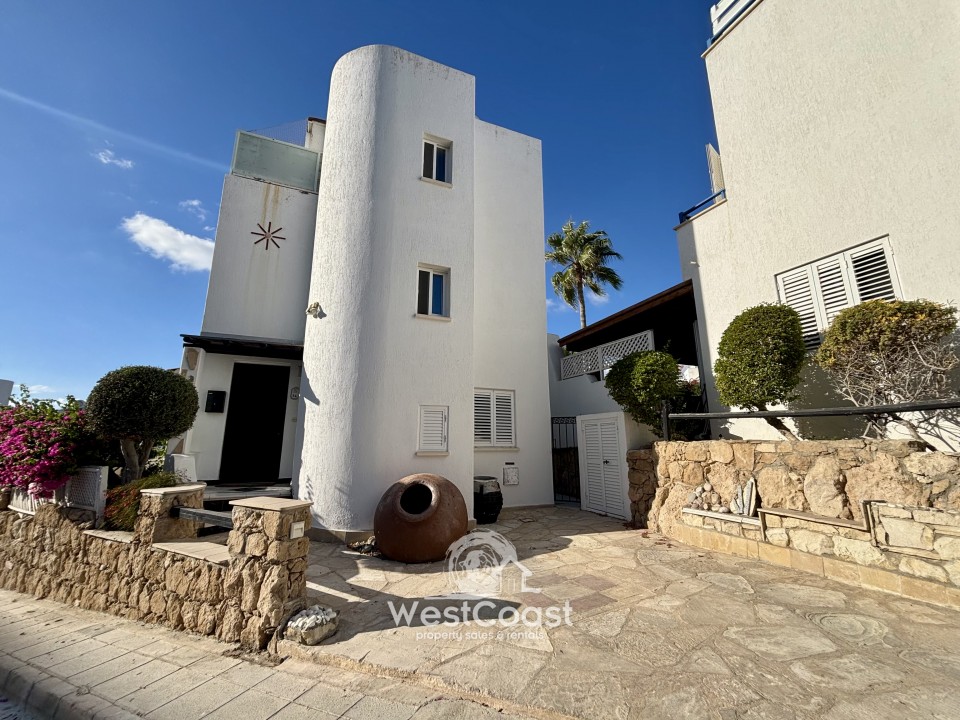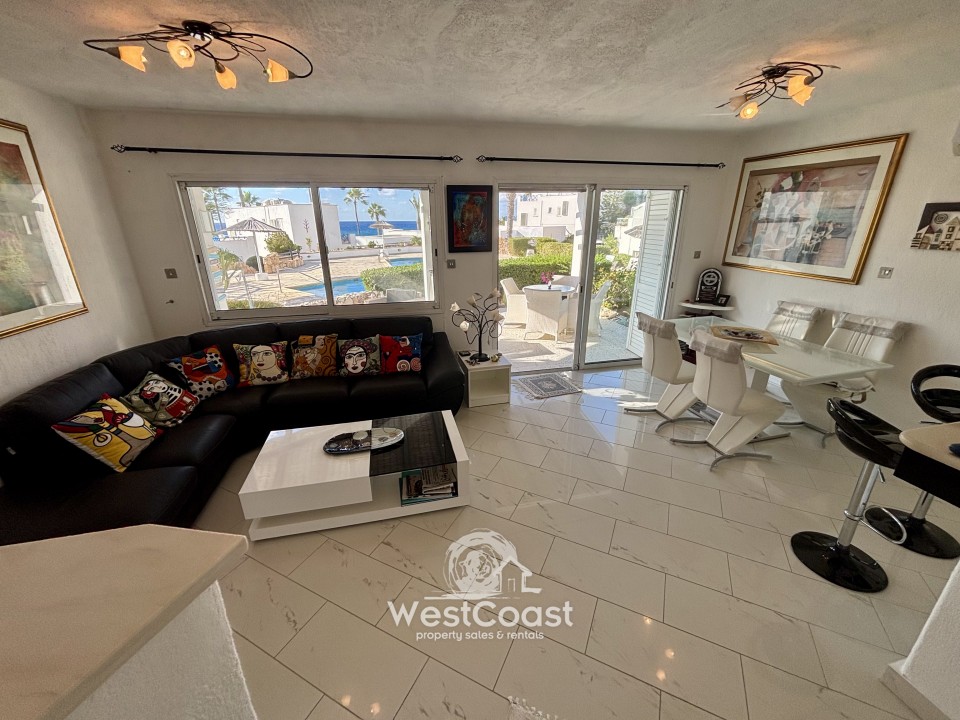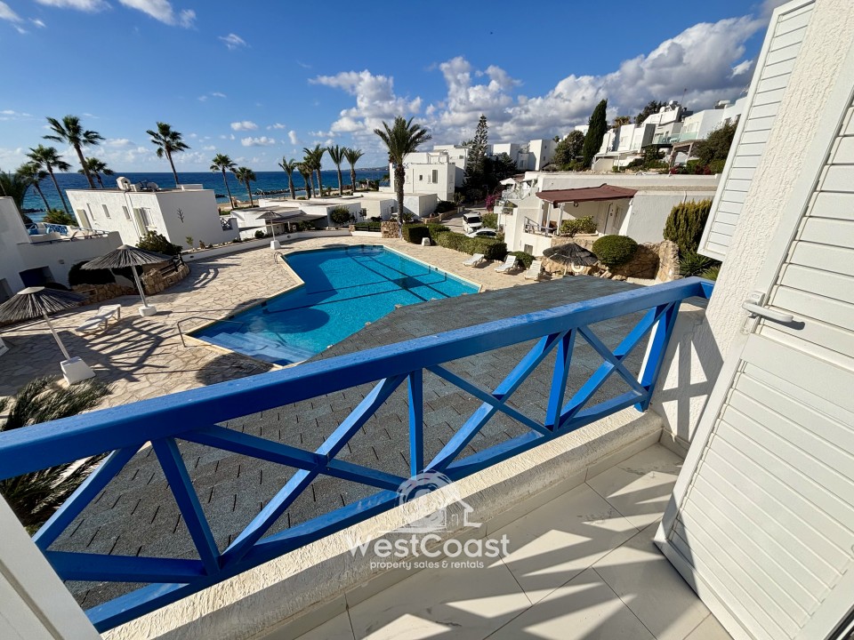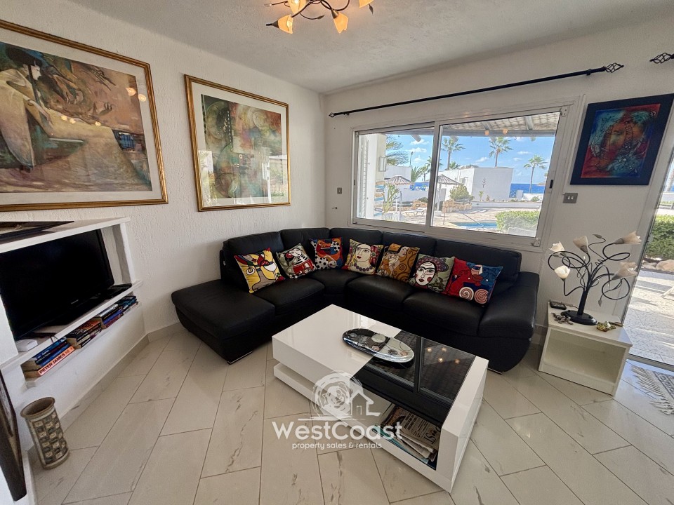 Beautiful 2 bedroom detached villa with an enclosed room on the roof terrace is located in a beach front complex located in lower Chloraka. This property is located in a well maintained area which has well maintained communal gardens, large communal swimming pool, beautiful path walks, walking distance to the sea and an easy 5 minute drive to the town centre or the Paphos harbour, which has all amenities, bar, restaurants and shops.