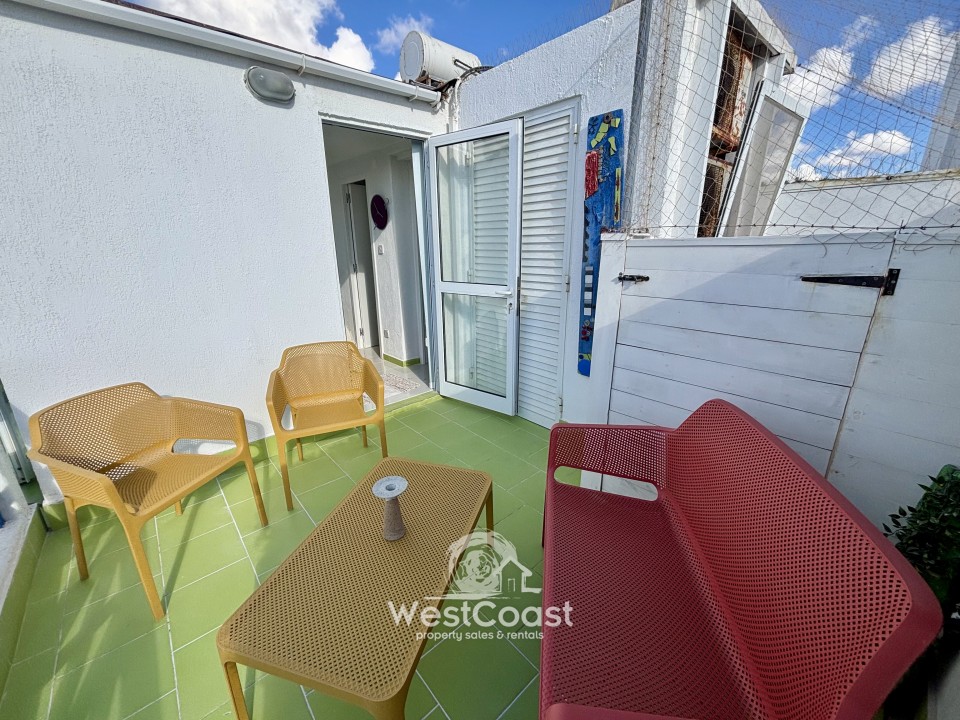 Upstairs there are two double bedrooms. The two bedrooms share the spacious shower room. The master bedroom has a private balcony which has beautiful views of the sea. Here you can enjoy a cup of coffee while overlooking the sea view. Up a second set of stairs and you are welcomed with a spacious roof terrace. Here you can enjoy a glass of wine with the beautiful sea views and stunning sunset as your backdrop. The roof terrace has been partially closed and used as a third bedroom. There is also a second shower room on this level.